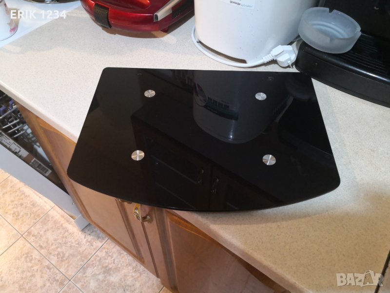 Стъклен черен рафт за стена размер 40x30.С фабрични точки за захващане с винтове.