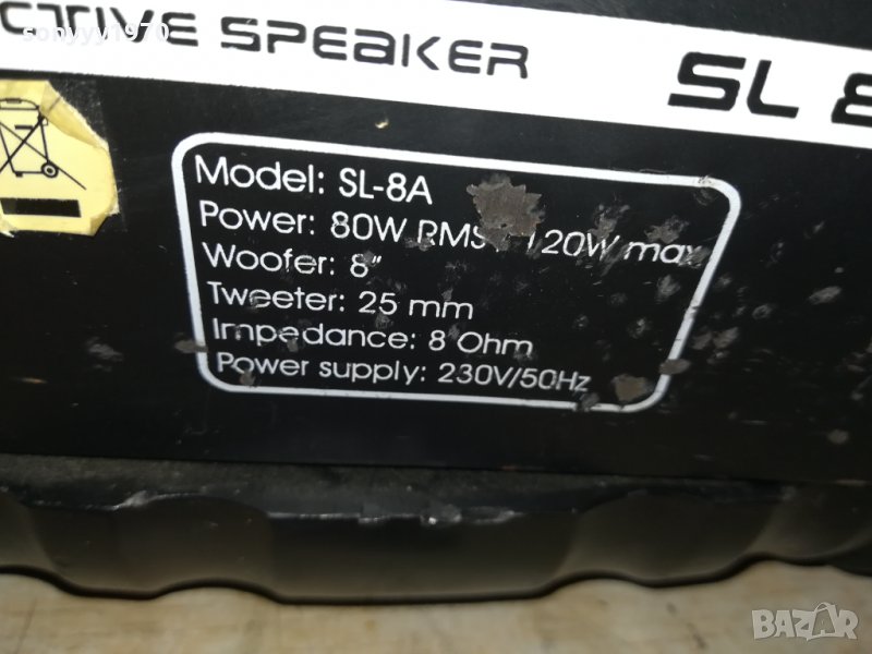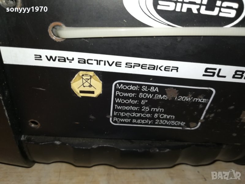 SIRUS SL8A 2WAY ACTIVE SPEAKER 1БР-тежка масивна с планка за монтаж-37Х27Х22см-1БР-ЕДНА