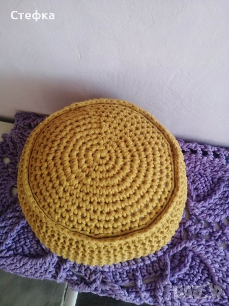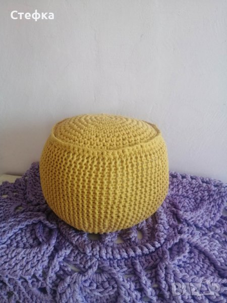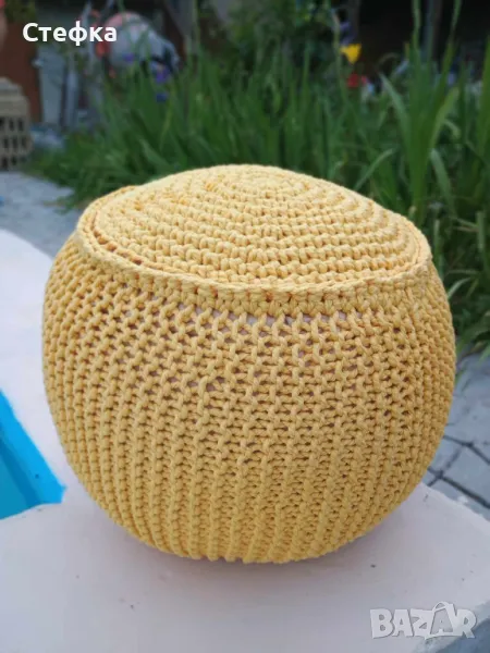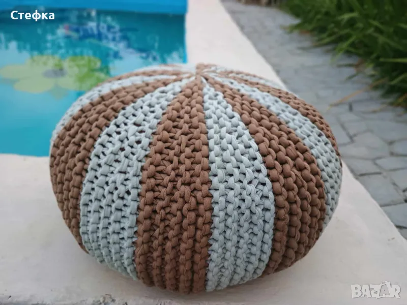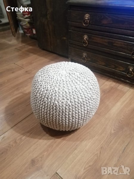 Ръчно изработен пуф от памучно въже. .Мек и удобен, може да бъде използван като табуретка или декорация за дома.