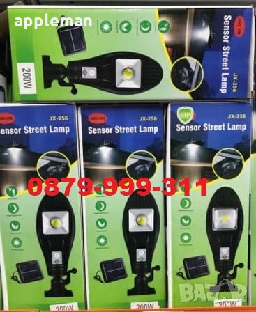 Уникална соларна лампа 200W с подвижен соларен панел + дистанционно + стойка и крепежни елементи.