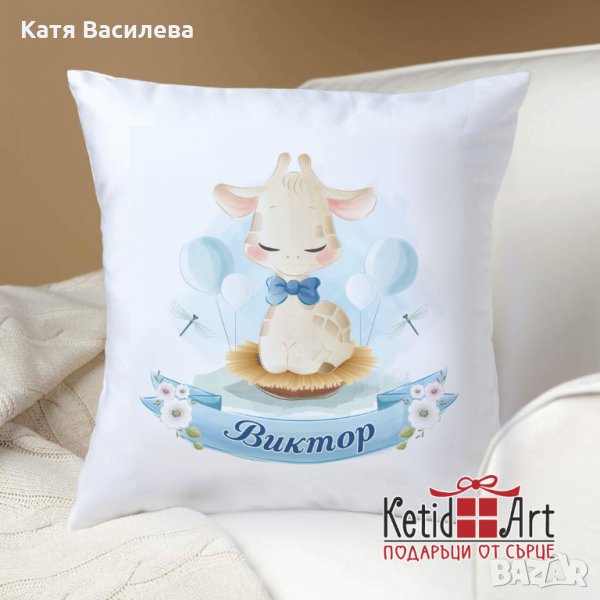Направете оригинален персонален подарък с тази очарователна бебешка възглавничка визитка за новородено бебе, рожден ден, кръщене или друг детски празник.