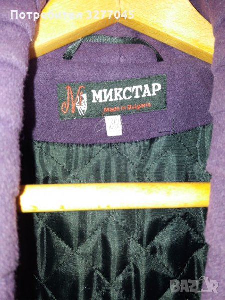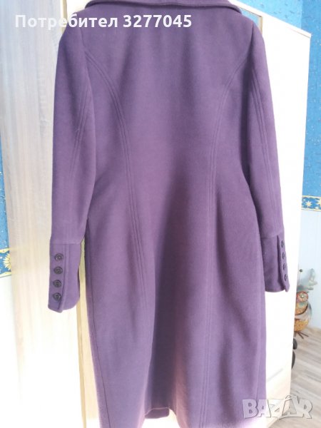 Вълнено палто от българска фирма в теменужен цвят. Леко вталена модерна, актуална кройка. Добре подплатено.