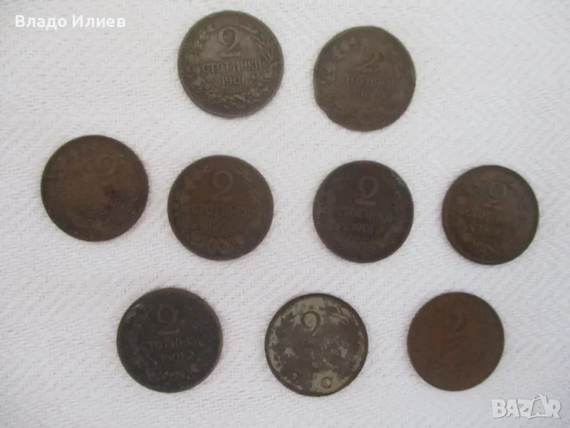 1901 г.-9 бр.-от 5 до 33 лв.броя.,5 стотинки от 1912 г--7 бр.-от 4 до 42 лв.броя,10 стотинки от 1917 г.—14 бр.-от 2 до 21 лв.броя.,20 стотинки от 1906 г. и от 1888