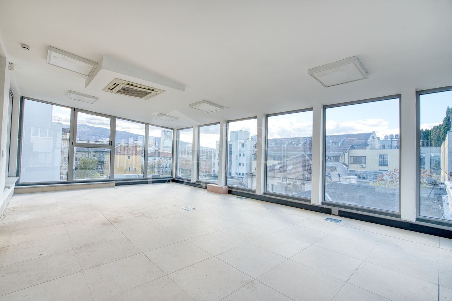 Отдава се по наем офис с площ от 300 кв. м. със собствени санитарни възли, скрит бюфет с мивка за кафе/чай.