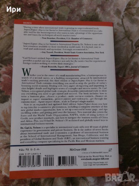 Whether you're the owner of a small manifacturing firm, a businessperson in search of a second career, or a budding entrepreneur attracted by international trade's exciting potential, this third edition of Import/Export: How to Get Started in International Trade contains everything you need to reap the profits of today's booming world economy. Dealing with every aspect of exporting and importing, it cites helpful details and highlights scores of examples and success stories. Dr. Carl Nelson, a recognized global trade strategist, demystifies international trade to show you everything you need to get started and succeed. The book includes: how to write a business plan...choose a product...make overseas contacts...finance an import or export transaction...protect patents and trademarks...get through the customs maze...figure import duties...trade in Europe's single market. Now in an expanded and updated third edition Import/Export shows you how to tap into the e-commerce phenomenon, including a complete overview of this new global market opportunity, how to set up a successful home page, and tips on filling orders and getting paid over the Internet. New material also covers the Euro and the World Trade Organization, NAFTA, tricks of using Letters of Credit, new product standarts, and how to navigate the business worlds of China and Africa. Plus, you'll find Dr. Nelson's 20 acclaimed and globally tested keys to international business success.
