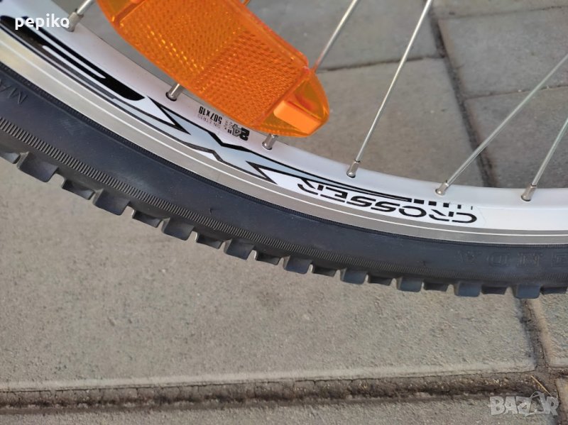 НОВ алуминиев юношески велосипед ALISSA CROSS 24 цола с 18 скорости,супер лека алуминиева рамка 24 цола с 18 скорости,фиксирани превключватели SHIMANO SL-RS TOURNEY 3 Х 6,алуминиеви курбели SHIMANO,пластмасови педали,средно движение касета,преден отклонител SHIMANO TOURNEY,заден отклонител SHIMANO TZ TOURNEY,задни венци SHIMANO MF-TZ20,предна и задна емайлирани главини JOYTECH,алуминиево колче на седалката,спортна седалка на релси SELLE ITALY,алуминиево колче на кормилото,алуминиево кормило,алуминиеви лостчета на спирачките,преден амортисьор ZOOM,предна и задна алуминиеви вибрейк спирачки PROMAX,алуминиеви двойностенни усилени капли,никелирани спици,гуми със спортен грайфер и два бели канта КЕНДА 24 х 1,75,размер на рамката 34 х 54 см.тегло 13,9 кг.много добър велосипед.