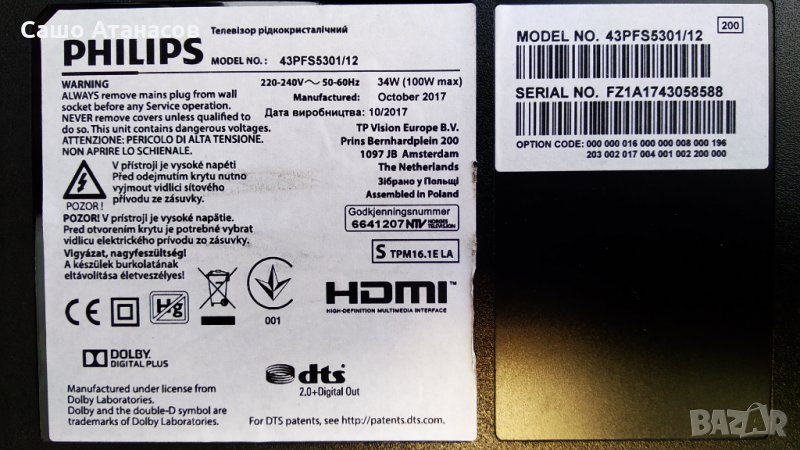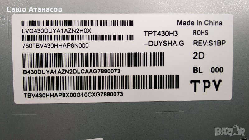 PHILIPS 43PFS5301/12 със счупена матрица ( TPT430H3-DUYSHA.G REV:S1BP )