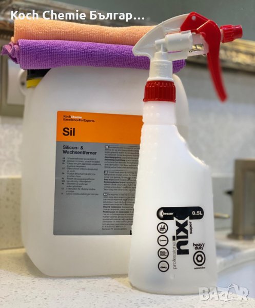 Koch Chemie Sil - е обезмаслител на алкохолна основа за лесно отстраняване на силиконови масла, восъци, остатъци от полиране и т.н., от лака на автомобила и всички повърхности, устойчиви на разтворители.