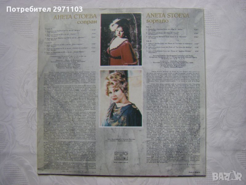 Съпровожда Симфоничен оркестър на Бълг. телевизия и радио и Оркестър на Софийската нар. опера, диригент Недялко Недялков