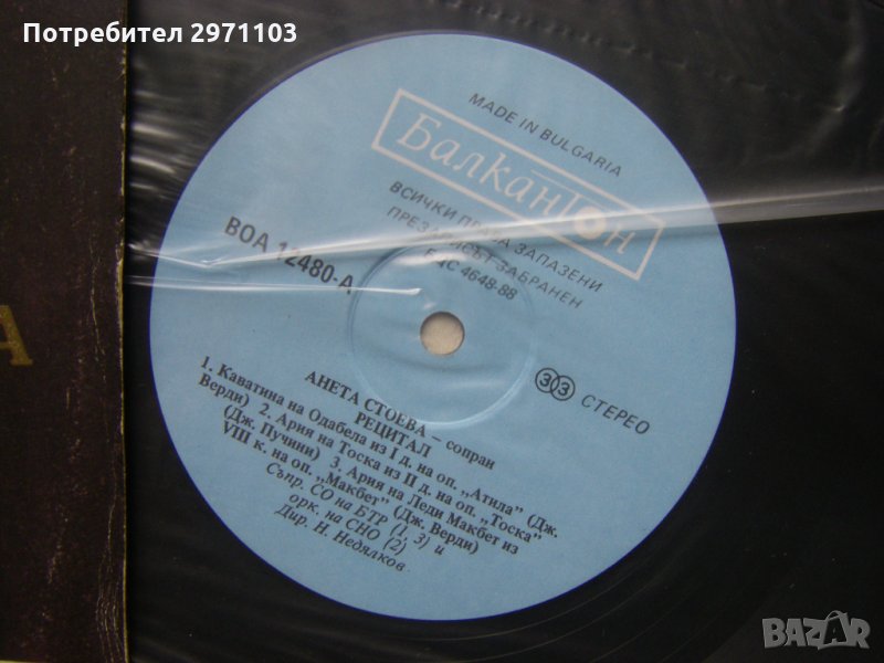 Грамофонна плоча - ВОА 12480 - Рецитал на Анета Стоева - сопран
