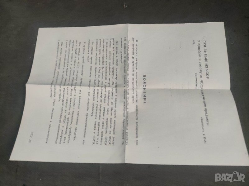 Продавам стар документ Декларация за влизане в Чехословакия → Обява 35432664