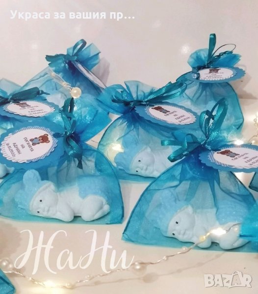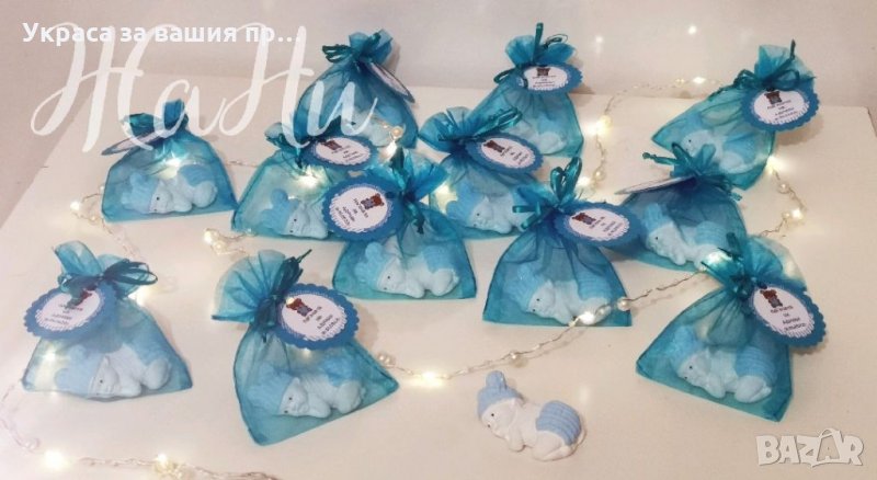 Керамично бебе в торбичка подаръчета за гостите на бебешка погача на тема Мечета → Обява 35433119