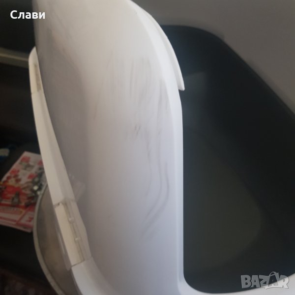 Предната част заедно с окачената летяща вратичка се отварят посредством повдигане и по този начин улесняват ежедневното почистване. Освен нова горната част може да се сваля изцяло - за по-удобната и бърза подмяна на постелката за тоалетна. Сменяемият активен въглен, интегриран в капака, не позволява разпространението на неприятна миризма извън тоалетната.