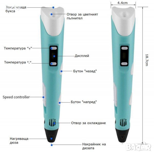 Ако имаш въображение или просто искаш да направиш някаква фигурка това е което ти трябва!!! Ако искаш да развиеш въображението на твоето дете, да се забавлявате заедно и творите едновременно… 3D писалката разтапя пластмаса, която моментално застива в твърда и стабилна форма. Възможностите се ограничават единствено от въображението ти и цветовете, с които разполагаш!