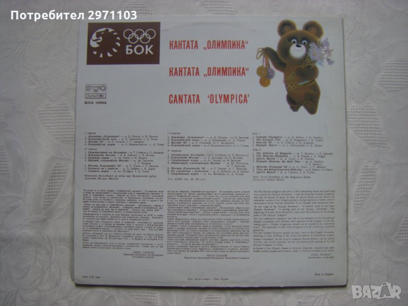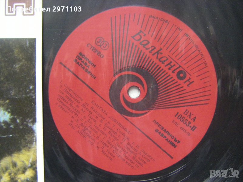 Грамофонна плоча - ВХА 10553 - Кантата Олимпика, изпълнява Ансамбъл за песни при Българското радио, диригент Михаил Милков