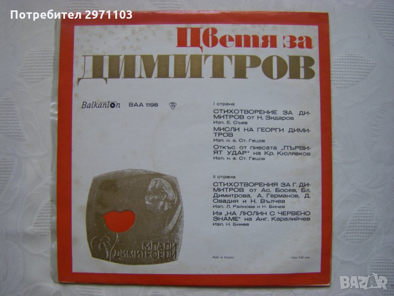 Грамофонна плоча - ВАА 1198 - Цветя за Димитров