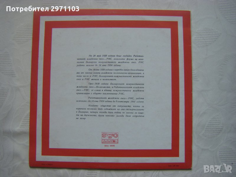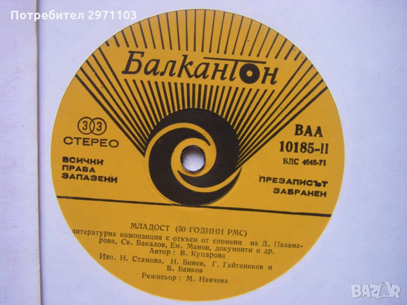 Грамофонна плоча - ВАА 10185 - 50 години РМС. Литературна композиция "Младост"