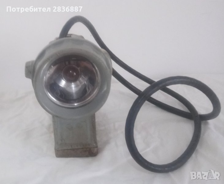Бивша източногерманска електрическа минна лампа, произведена в град Цвикау. Използван е в мина в България по времето на бившия СССР (CCCP).