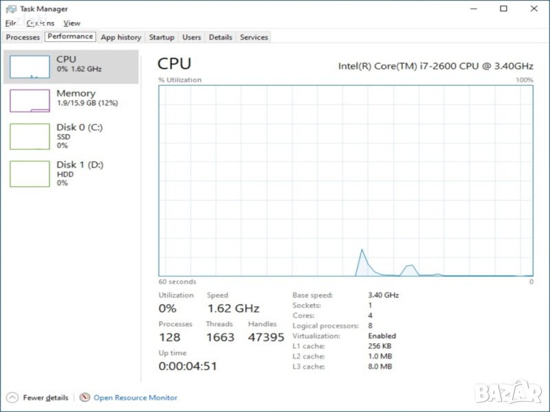Процесор: Intel Core i7-2600 (3.4 GHz, up to 3.80 GHz, 8 MB Cache) , Осем логически ядра, Четери физически