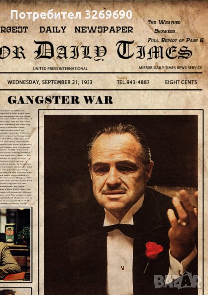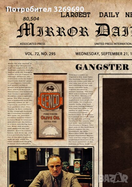 Кръстникът Дон Вито Корлеоне вестник постер плакат → Обява 35443131