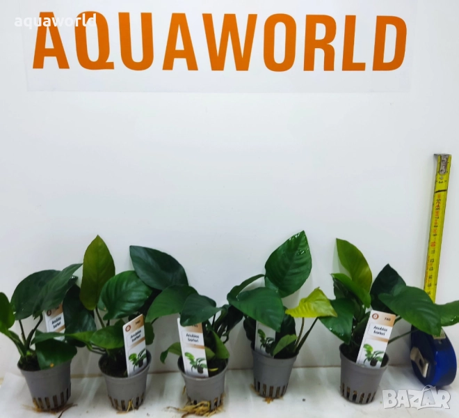 Описание: Anubias barteri var. barteri е бавно растящ, лесен за отглеждане и непретенциозен. Развива се добре както в мека, така и в твърда вода. Силната светлина не се препоръчва, поради вероятността от появата на водорасли по листата. Може да се засее в грунда, но без да се заравя ризомата (малките коренчета), или да се прикрепи към корен или камък. Препоръчва се за акавариуми с цихлиди или растителноядни риби, поради твърдите си и неядливи листа. Може да се използва и в палудариуми. Нормално в природата расте полуводно, подводно или напълно на сушата, на засенчени места. Главно расте в реките на западна Африка и предпочита силни течения. Изключително рядко е намиран да расте заровен в пясъка, в повечето случаи е бил прикрепен към корени или камъни. На височина достига 25 - 45см., листата са с дължина 7 - 16см, ширина 4 - 11см, ярко зелени на цвят. Този вид анубиас има много вариации на формата на листата. Те са толкова специфични, че се подвизават със самостоятелни имена.