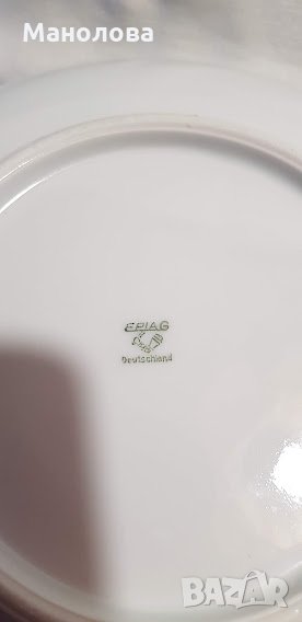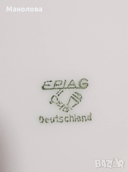 Прекрасен комплект произведен в Чехословакия EPIAG (Първа бохемска порцеланова индустрия). Маркировката е използвана около 1940 г., по време на германската окупация. Обърнете внимание, че всъщност пише 'DEUTSCHLAND'
