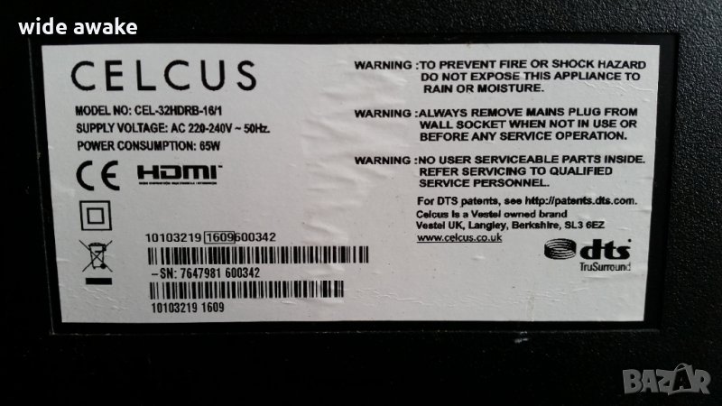Платка захранване и основна платка от Celcus CEL-32HDRB-16/1. Телевизора е със счупен дисплей.