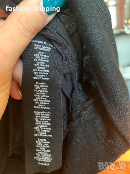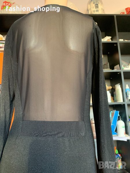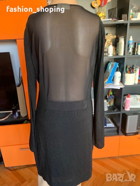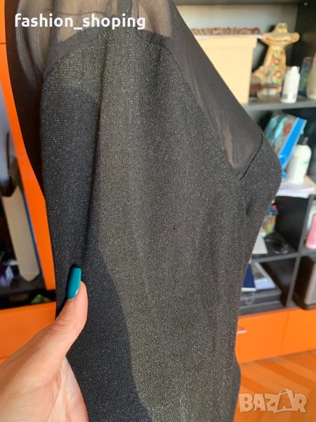 Елегантна, женствена рокля за повод на скъпия скандинавски бранд By Malene Birger. В непреходен черен цвят с много деликатна блестяща нишка, която не стои кичозно. Акцент е тюла, който в е областта на деколтето и на гърба. Роклята е еластична и приема извивките на тялото. За дама, която има красиви и апетитни извивки би стояла страхотно. Роклята е с подплата, която е пришита към нея.