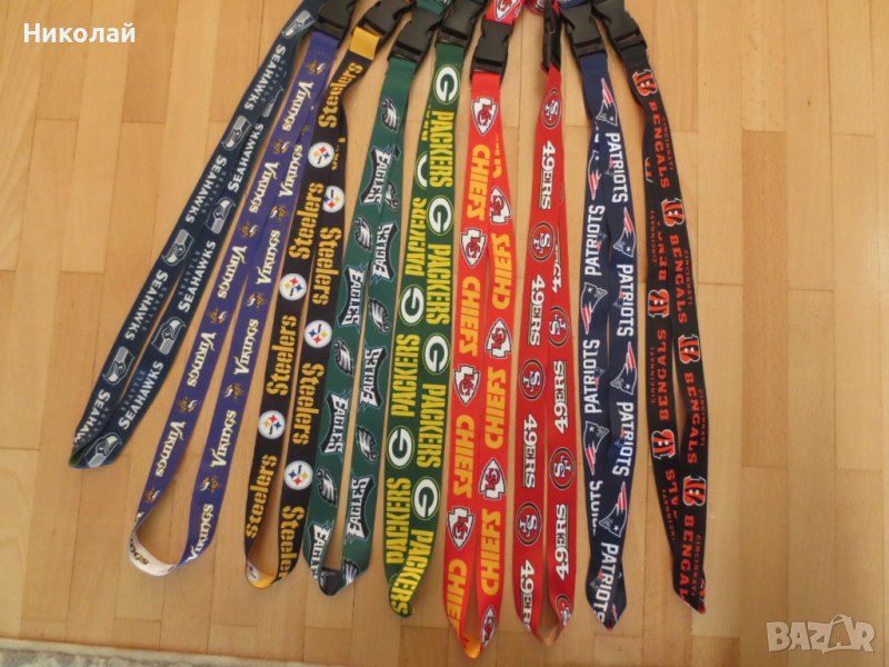 връзките са с две лица. Емблемата не е лепенка или щампа, същото време е много ясна, което ги прави издръжливи на износване. Много ярки и красиви цветове. Размер 2,5*62см. Ако желаете връзка на отбори от NFL , който не е наличен от сниманите, може да се поръчва и в рамките на 3седмици може да се достави