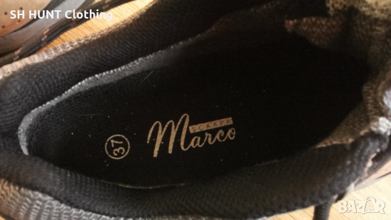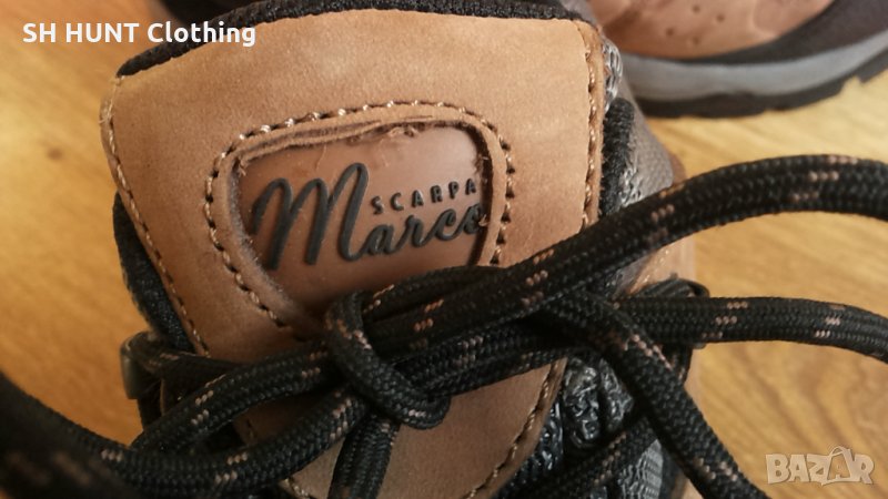 Марка: SCARPA Marco HydroGuard Leather Shoes - естествена кожа водонепромокаеми 100-11 Вътрешна мембрана Hydroguard поддържа краката сухи в локви, възможни са и пресичания на потоци, идеално за алпийска среда.