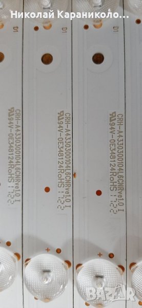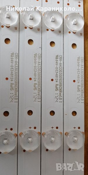 Лед подсветка-CRH-A4330300105R6CNRve1.0 /7710-643000-R100/ -4бр.х 5 диода,427мм и CRH-A4330300104L6CNRve1.0 /7710-643000-L100/-4бр. Х 4 диода,332мм.Цена на лента-3 евро Общо- за 8-те -15 евро.