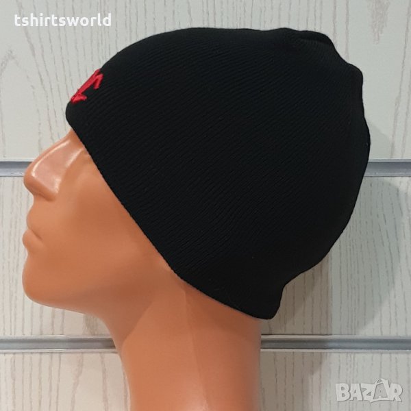 Уникална, функционална, универсална, стилна и модерна нова зимна черна шапка на музикалната група AC/DC.