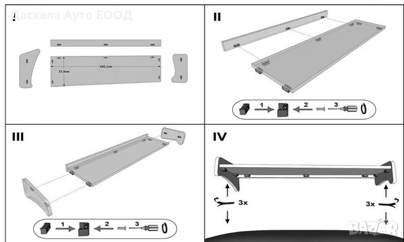 инструкции за монтаж, велкро, винтове и шестограмен ключ.