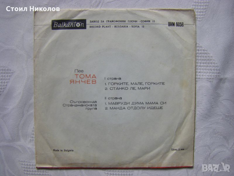 Малка плоча - ВНМ 6058 - Пее Тома Янчев, съпр. Странджанска група