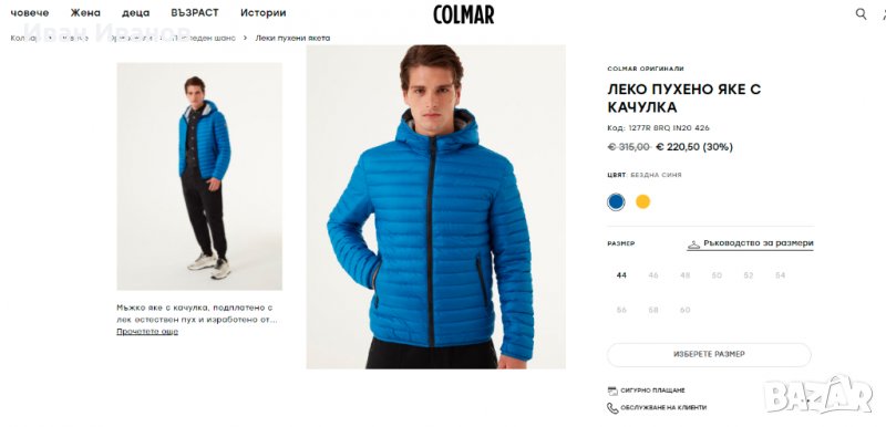 . Colmar лого на гърбаСъстав: 100% полиестер, подплата 100% полиестер, подплата 90% патешки пух 10% патешко перо.