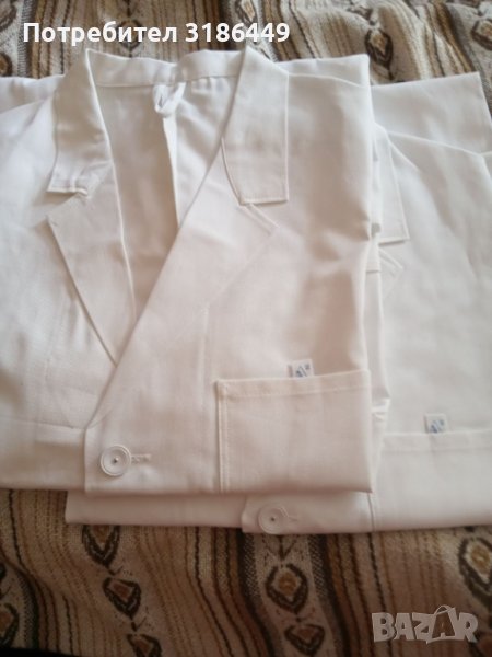 2. Две мъжки, еднакви, нови, бели престилки №52. Дължина 100см. Ширина от подмишница до подмишница 62см. Снимки от 5 до края. Цена 15лв/бр.