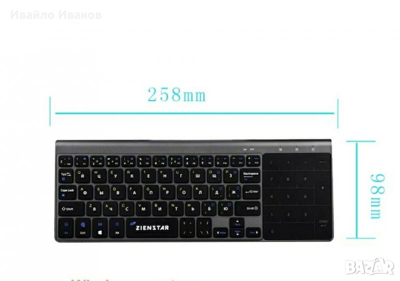 # Сензорна блутут клавиатура с тъчпад, вградена батерия, подсветка и usb dongle - 55лв.
