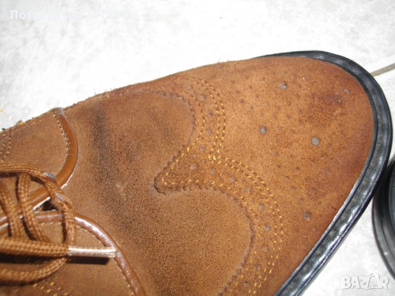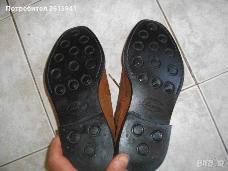 Обувките са ползвани няколко пъти. Много запазен външен вид, без никакви наранявания по кожата. Цвят - тъмно кафяв. Кожага е естрагон - обърната обратно телешка кожа. Изцяло ест. кожа отвън, отвъртре - естествена кожа агнешка.