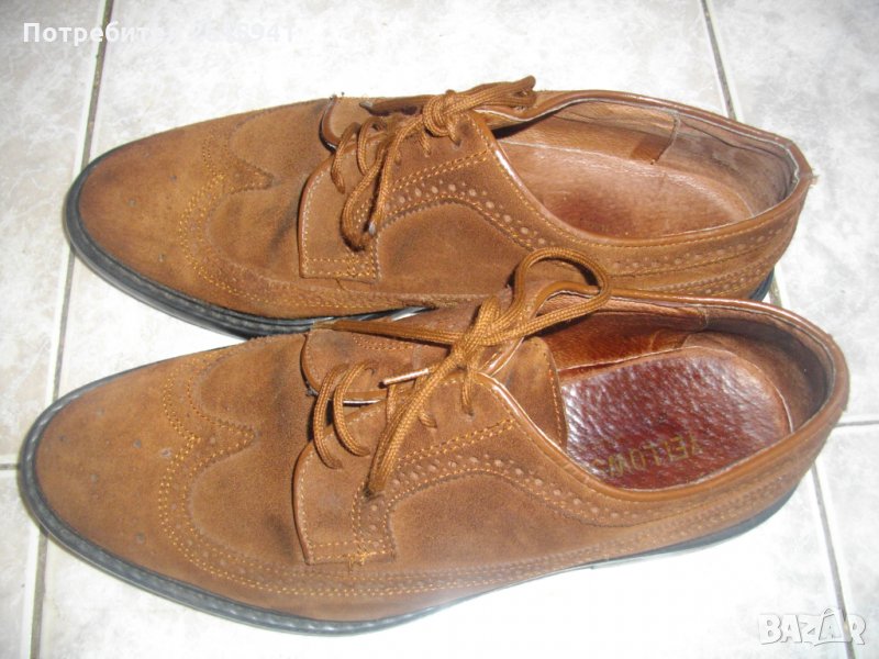 №42-Мъжки Естествена Кожа-Обувки-Половинки-Италиански-Оригинални-Пролет-Лято-Есен-Yellow Side → Обява 35478038