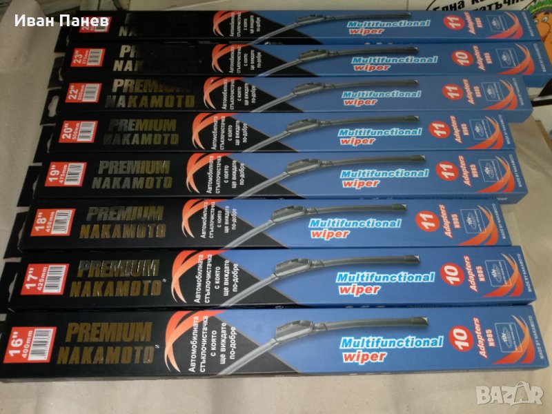 Японски чистачки от ново поколение, НАКАМОТО ПРЕМИУМ с 10-11 адаптора, тип "банан" подходящи за всички марки автомобили.