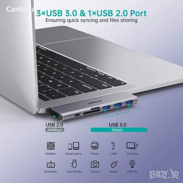 - 3 USB 3.0 порта с висока скорост до 5 Gbps, почти 10 ПЪТИ по-бързо от USB 2.0 портове. Качването и изтеглянето на снимки, видеоклипове, песни и файлове отнема само няколко секунди за висока ефективност. USB 2.0 портът на Mac адаптера поддържа устройства с ниска честотна лента като клавиатура, мишка за стабилна WIFI връзка