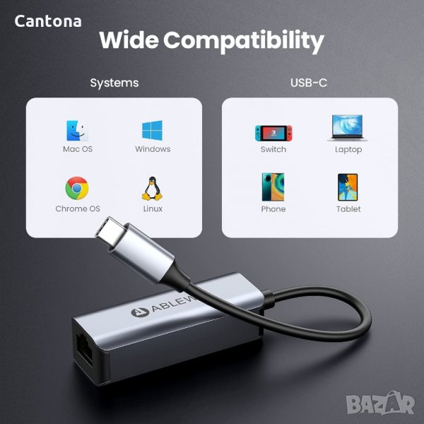 - 1000Mbps пренос на данни - USB-C Gigabit Ethernet портът поддържа супер бърза мрежова скорост до 1000Mbps (1 Gbps), съвместим надолу с 10/100 Mbps. ABLEWE ethernet тип c мрежов адаптер осигурява бързо предаване на данни и по-добра сигурност от повечето безжични връзки. (За да достигнете 1Gbps, уверете се, че използвате CAT6 и нагоре Ethernet кабели и портът Type-C трябва да е USB 3.0, а не USB 2.0.)