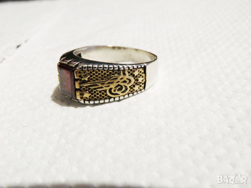 стар мъжки сребърен пръстен с червен камък и тугра, турски пръстен османски пръстен сребро