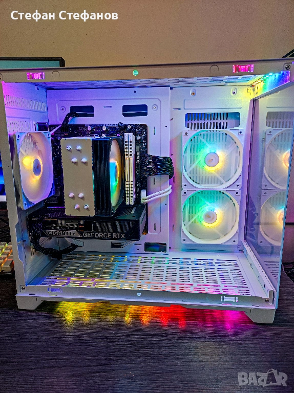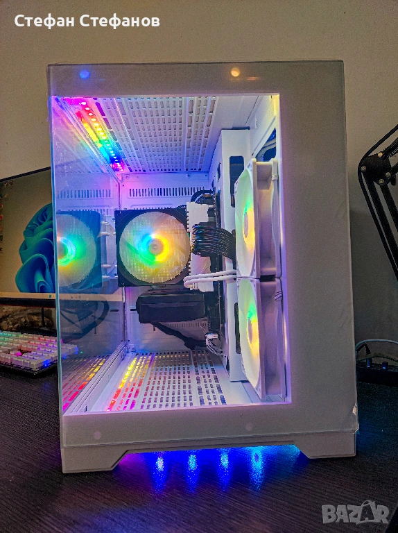 → Компютърна кутия с темперно стъкло и ARGB вентилатори, които светят с синхрон.