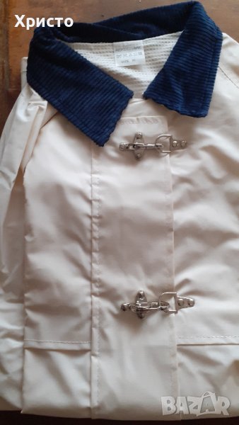 Снимки от 1 до 9, имам 1 брой размер - L и 1 бр - XL . Външни джобове 2 броя, тъмно синя яка от джинсов плат, За размер XL: височина гръб от началото на яката до долния ръб 87 см.,