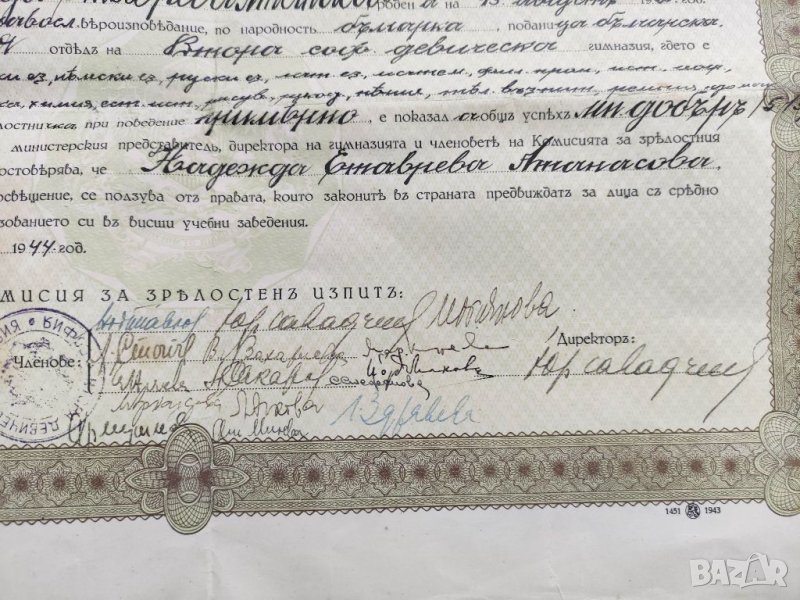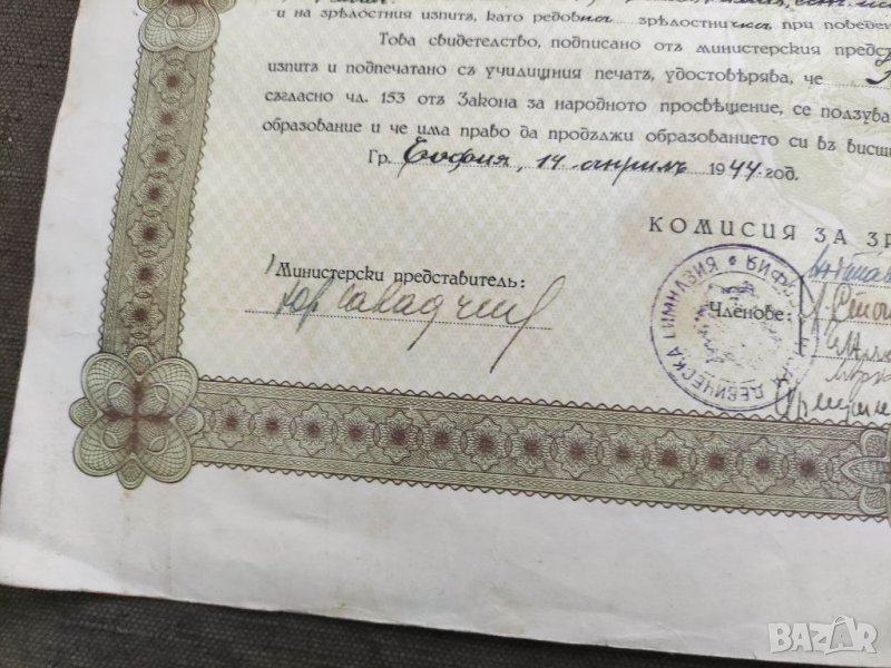Продавам стар документ Свидетелство за зрелост Втора девическа София 1944, снимка 1 - Антикварни и старинни предмети - 35494938 Продавам стар документ Свидетелство за зрелост Втора девическа София 1944, снимка 2 - Антикварни и старинни предмети - 35494938 Продавам стар документ Свидетелство за зрелост Втора девическа София 1944, снимка 3 - Антикварни и старинни предмети - 35494938 Продавам стар документ Свидетелство за зрелост Втора девическа София 1944, снимка 4 - Антикварни и старинни предмети - 35494938 Продавам стар документ Свидетелство за зрелост Втора девическа София 1944, снимка 5 - Антикварни и старинни предмети - 35494938 1/5