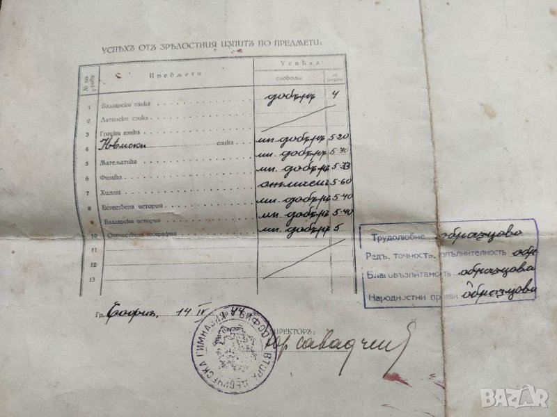 Продавам стар документ Свидетелство за зрелост Втора девическа София 1944 → Обява 35494938