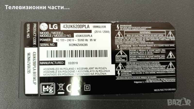 LG 43UK6200PLA със спукан екран-LGP43DJ-17U1 EAX67209001(1.5)/EAX67872805(1.1) HC430DGG-SLWL1-A111