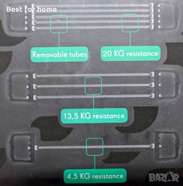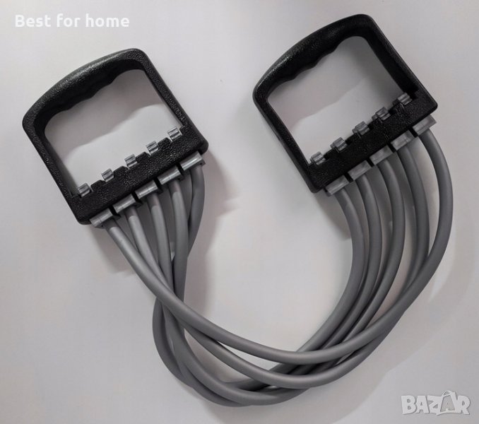 Този тренажор за гърди и ръце е идеален за тренировки у дома! Тренажорът за гърди и ръце има 5 нива, които се регулират много лесно и предлага устойчивост до 20 килограма! В допълнение към мускулите на гърдите и ръцете, той е насочен и към гърба и раменете.