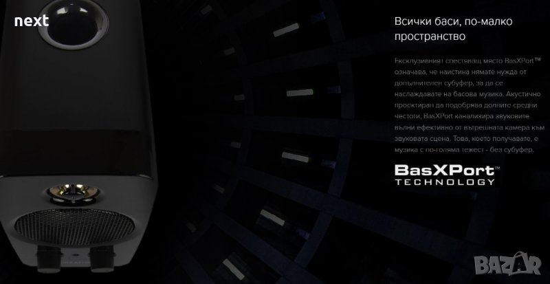 Ексклузивният спестяващ място BasXPort™ означава, че наистина нямате нужда от допълнителен субуфер, за да се наслаждавате на басова музика. Акустично проектиран да подобрява долните средни честоти, BasXPort канализира звуковите вълни ефективно от вътрешната камера към звуковата сцена. Това, което получавате, е музика с по-голяма тежест - без субуфер.